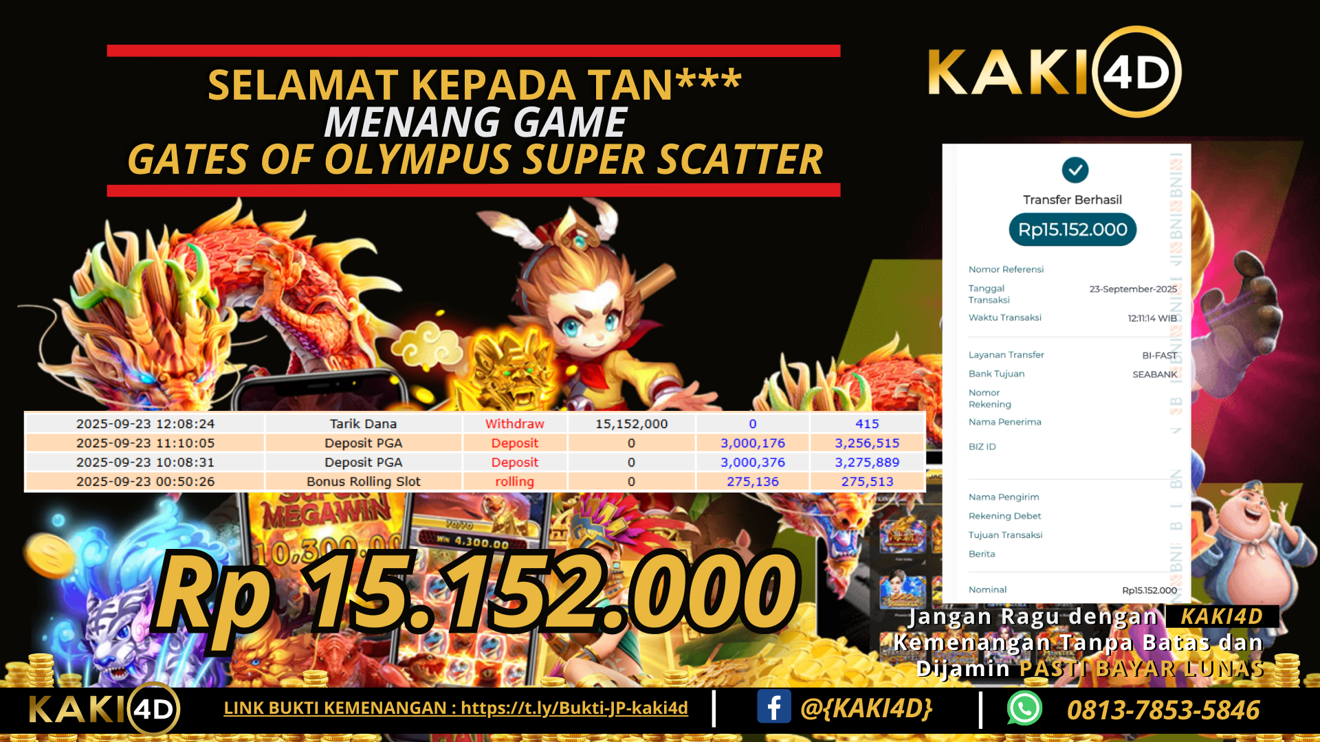 BUKTI JP 15 JUTA DI GAME GATES OF OLYMPUS SUPER SCATTER KAKI4D 23 SEPTEMBER 2025
