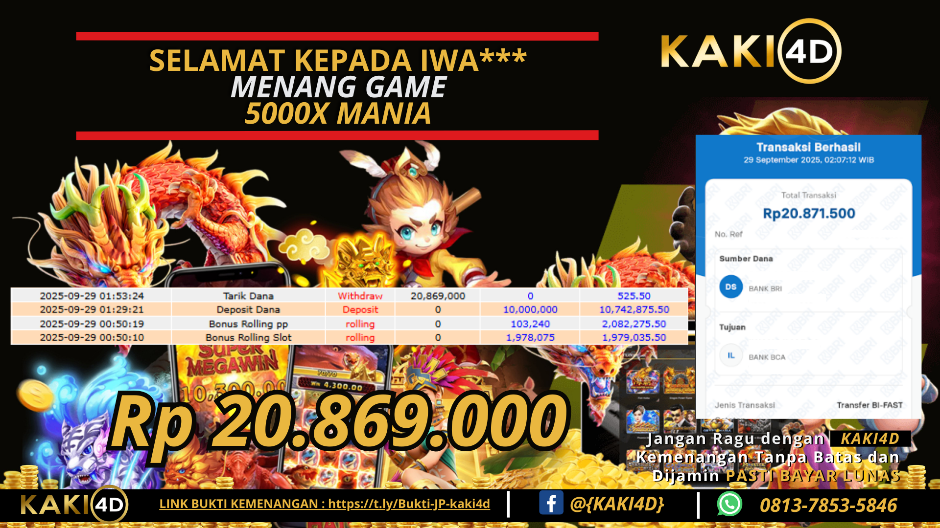 BUKTI JP 20 JUTA DI GAME 5000X MANIA KAKI4D 29 SEPTEMBER 2025