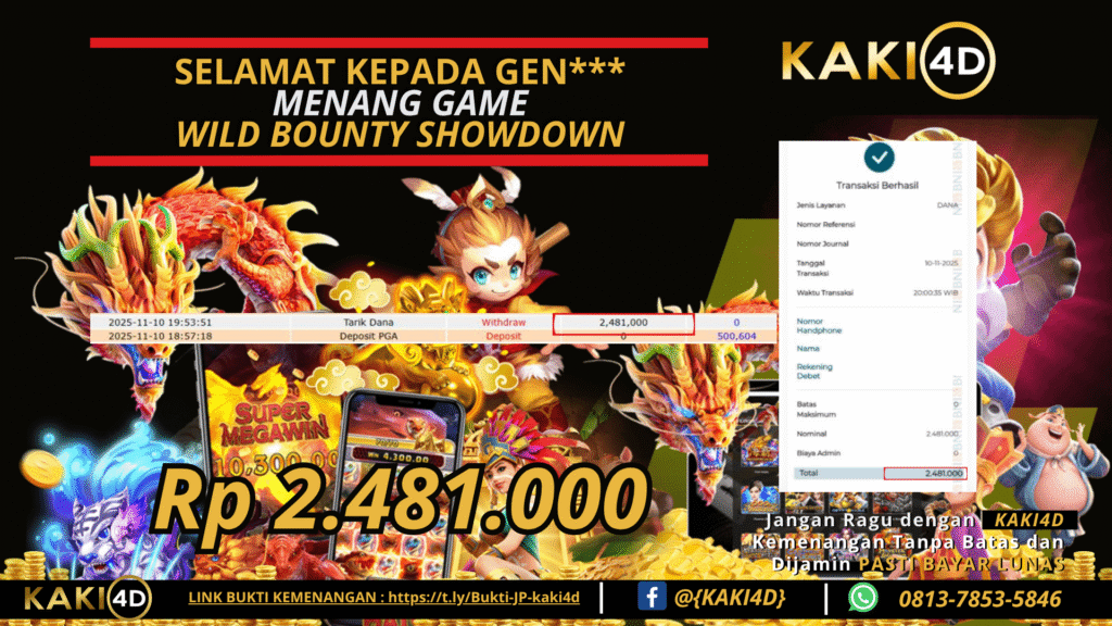 KAKI4D adalah situs terpercaya untuk Togel, Live Casino, dan Slot Online di Indonesia. Dengan satu KLIK , mainkan berbagai permainan dan menangkan besar. Kami menjamin pembayaran penuh untuk setiap kemenangan Anda. Nikmati juga promosi menarik dan deposit minimal hanya Rp. 10.000.Bergabunglah sekarang di JACKPOT IDN LIVE KAKI4D untuk pengalaman bermain yang aman dan menguntungkan. Berikut adalah BUKTI KEMENANGAN MEMBER di KAKI4D :