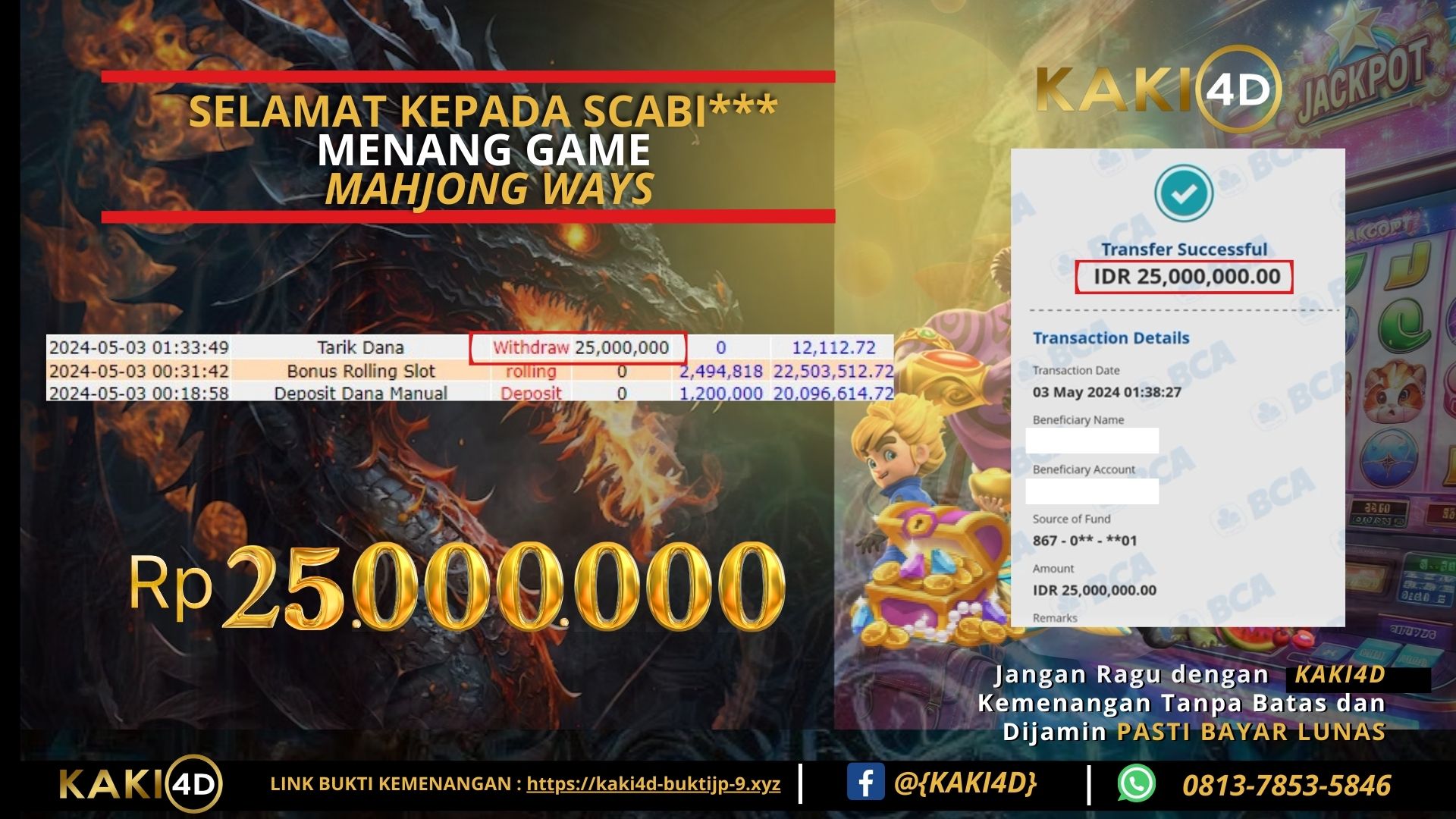 BUKTI JP 25JUTA DI MAHJONG WAYS KAKI4D 3 MEI 2024