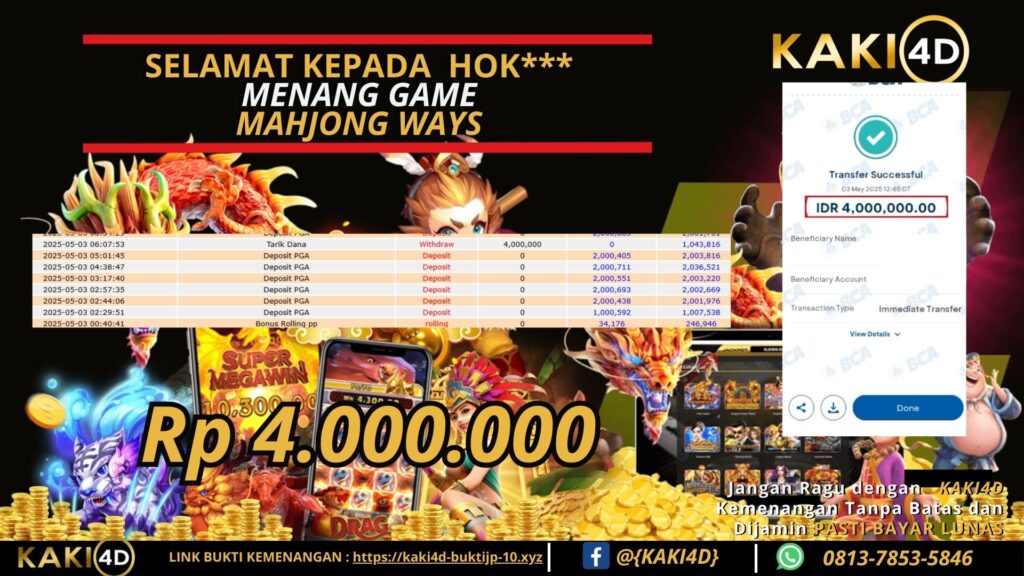 BUKTI JP 4 JUTA DI MAHJONG WAYS KAKI4D 03 MAY 2025