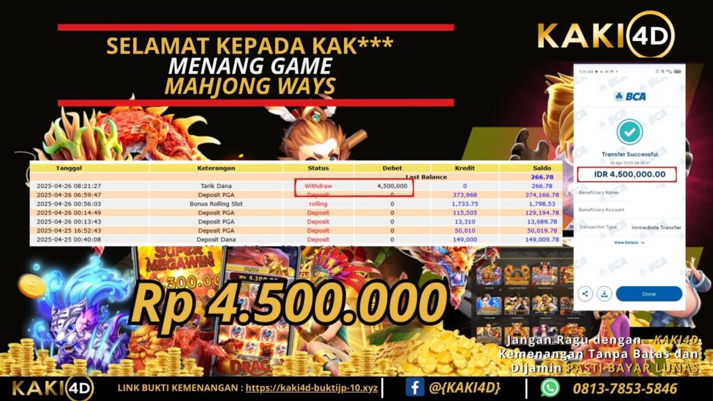 BUKTI JP 4 JUTA DI MAHJONG WAYS KAKI4D 26 APRIL 2025