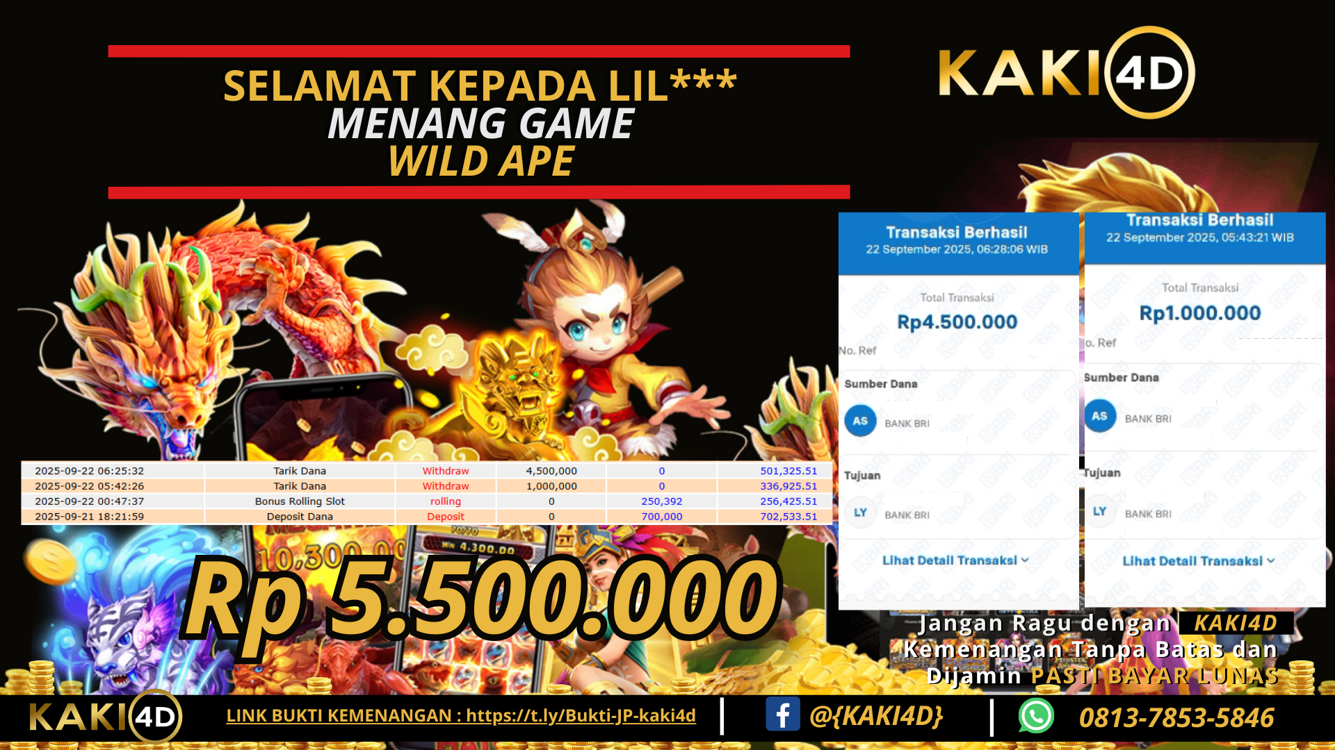 BUKTI JP 5,5 JUTA DI GAME WILD APE KAKI4D 22 SEPTEMBER 2025