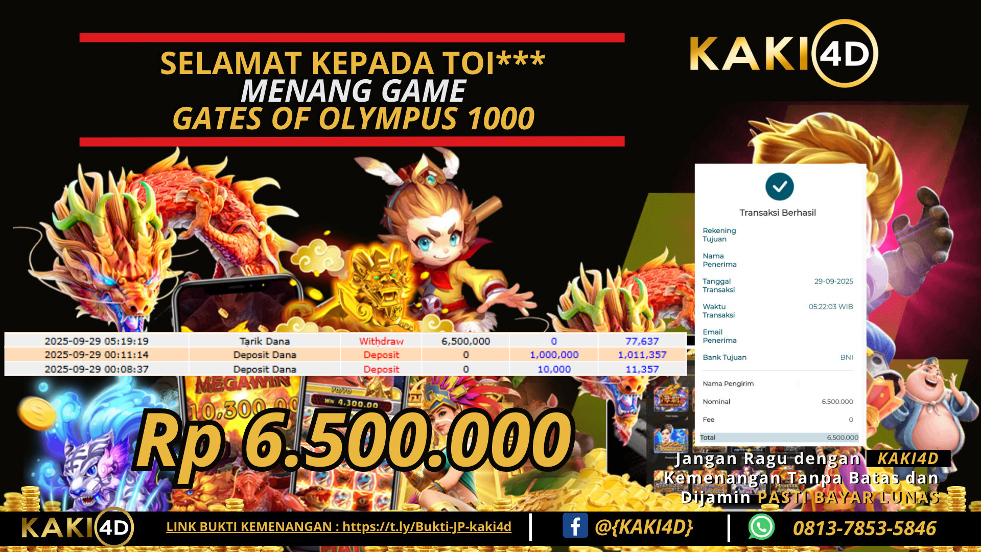 BUKTI JP 6,5 JUTA DI GAME GATES OF OLYMPUS 1000 KAKI4D 29 SEPTEMBER 2025