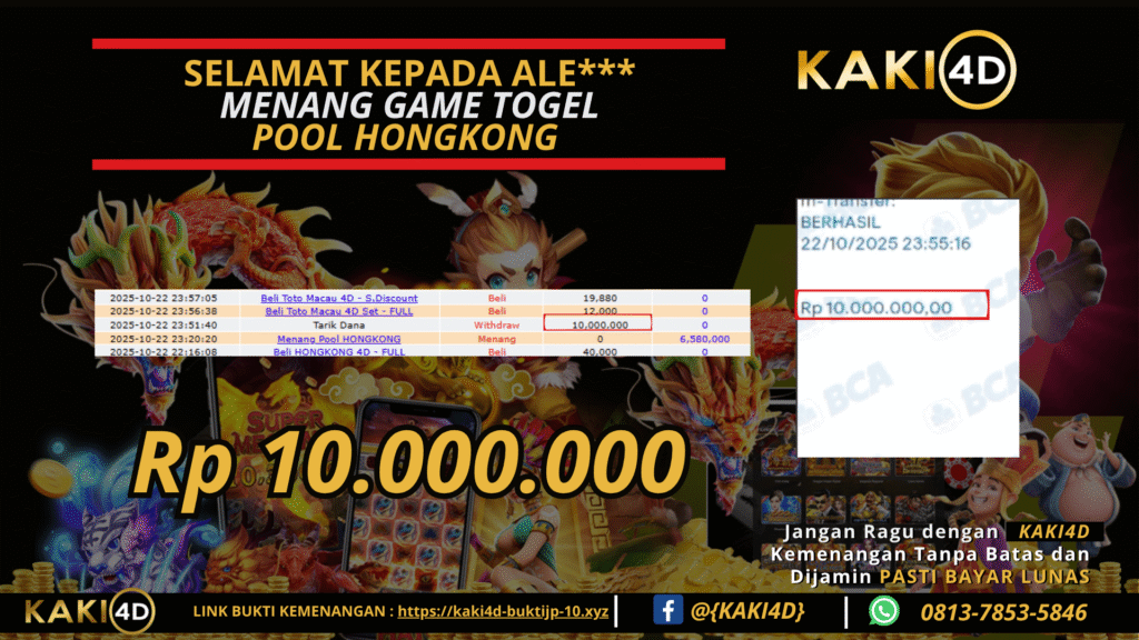KAKI4D adalah situs terpercaya untuk Togel, Live Casino, dan Slot Online di Indonesia. Dengan satu KLIK , mainkan berbagai permainan dan menangkan besar. Kami menjamin pembayaran penuh untuk setiap kemenangan Anda. Nikmati juga promosi menarik dan deposit minimal hanya Rp. 10.000.Bergabunglah sekarang di JACKPOT IDN LIVE KAKI4D untuk pengalaman bermain yang aman dan menguntungkan. Berikut adalah BUKTI KEMENANGAN MEMBER di KAKI4D