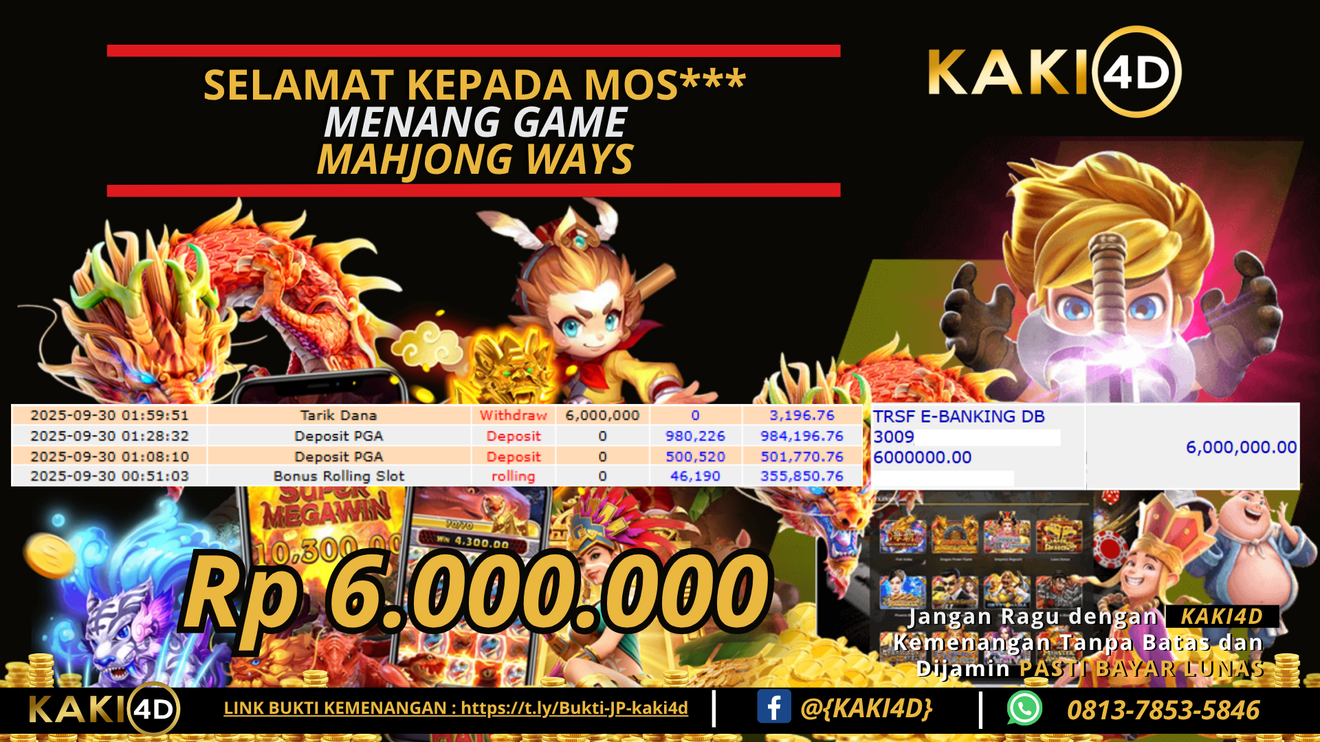 BUKTI JP 6 JUTA DI GAME MAHJONG WAYS KAKI4D 30 SEPTEMBER 2025