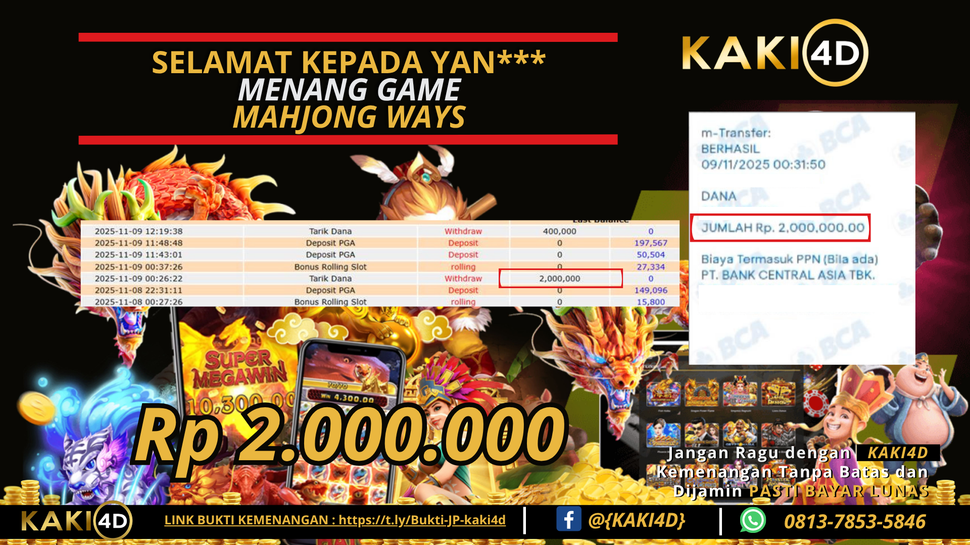 BUKTI JP 6 JUTA DI GAME MAHJONG WAYS KAKI4D 9 NOVEMBER 2025