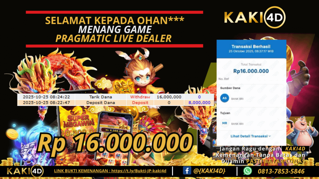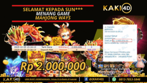 KAKI4D adalah situs terpercaya untuk Togel, Live Casino, dan Slot Online di Indonesia. Dengan satu KLIK , mainkan berbagai permainan dan menangkan besar. Kami menjamin pembayaran penuh untuk setiap kemenangan Anda. Nikmati juga promosi menarik dan deposit minimal hanya Rp. 10.000.Bergabunglah sekarang di JACKPOT IDN LIVE KAKI4D untuk pengalaman bermain yang aman dan menguntungkan. Berikut adalah BUKTI KEMENANGAN MEMBER di KAKI4D