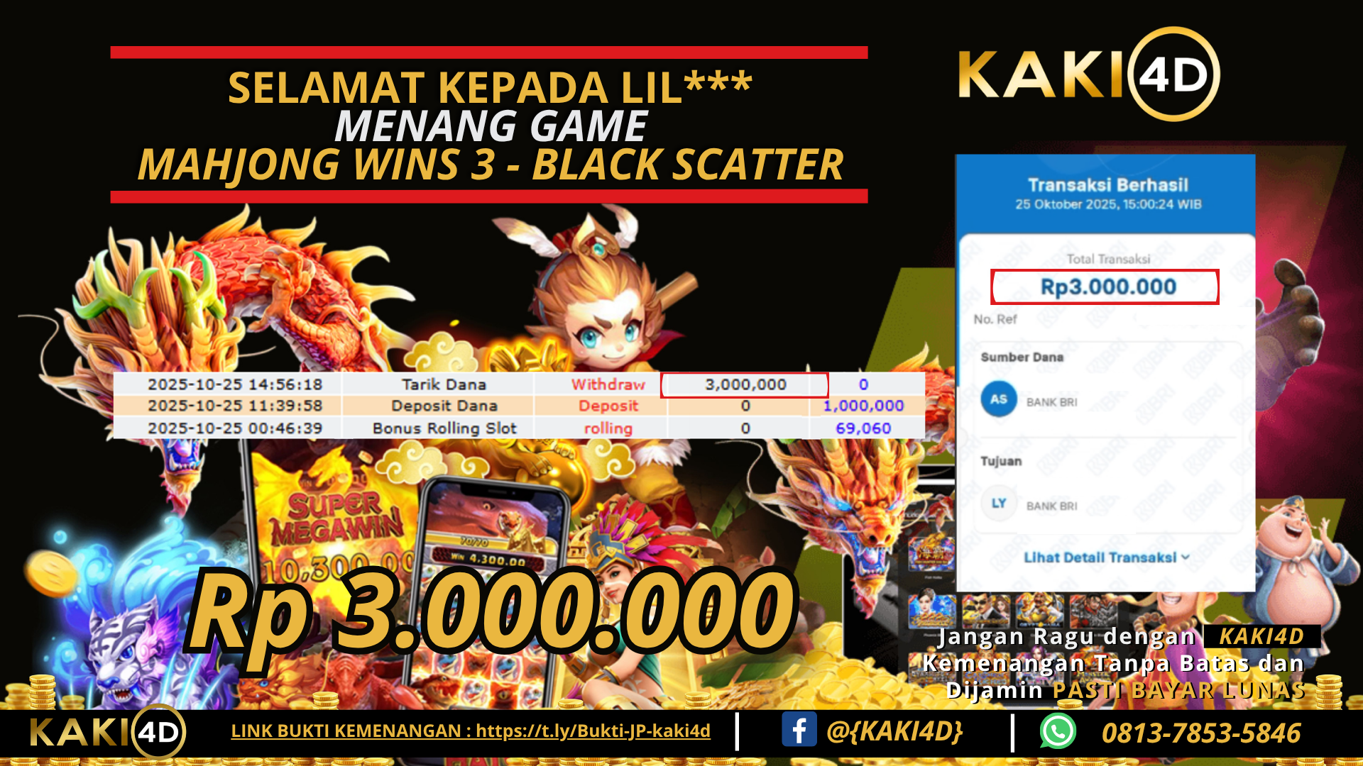 BUKTI JP 6 JUTA DI GAME MAHJONG WINS 3 – BLACK SCATTER KAKI4D 25 OCTOBER 2025
