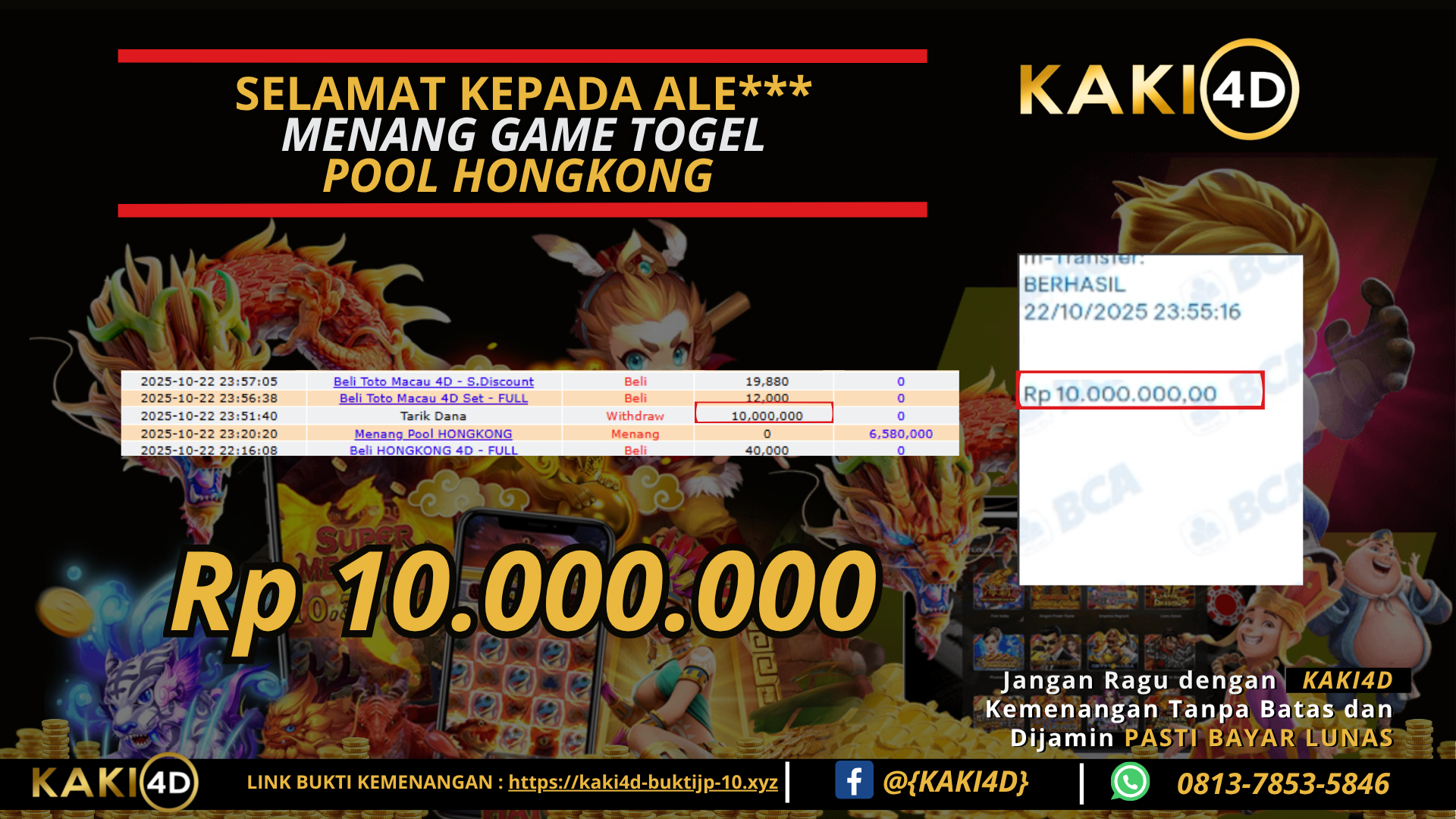 BUKTI JP 6 JUTA DI GAME POOL HONGKONG KAKI4D 23 OCTOBER 2025