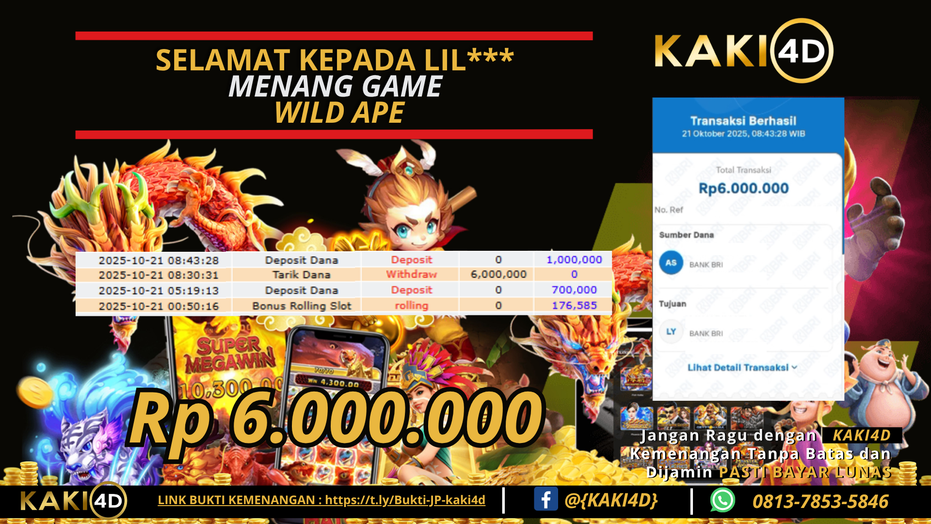 BUKTI JP 6 JUTA DI GAME WILD APE KAKI4D 21 OCTOBER 2025