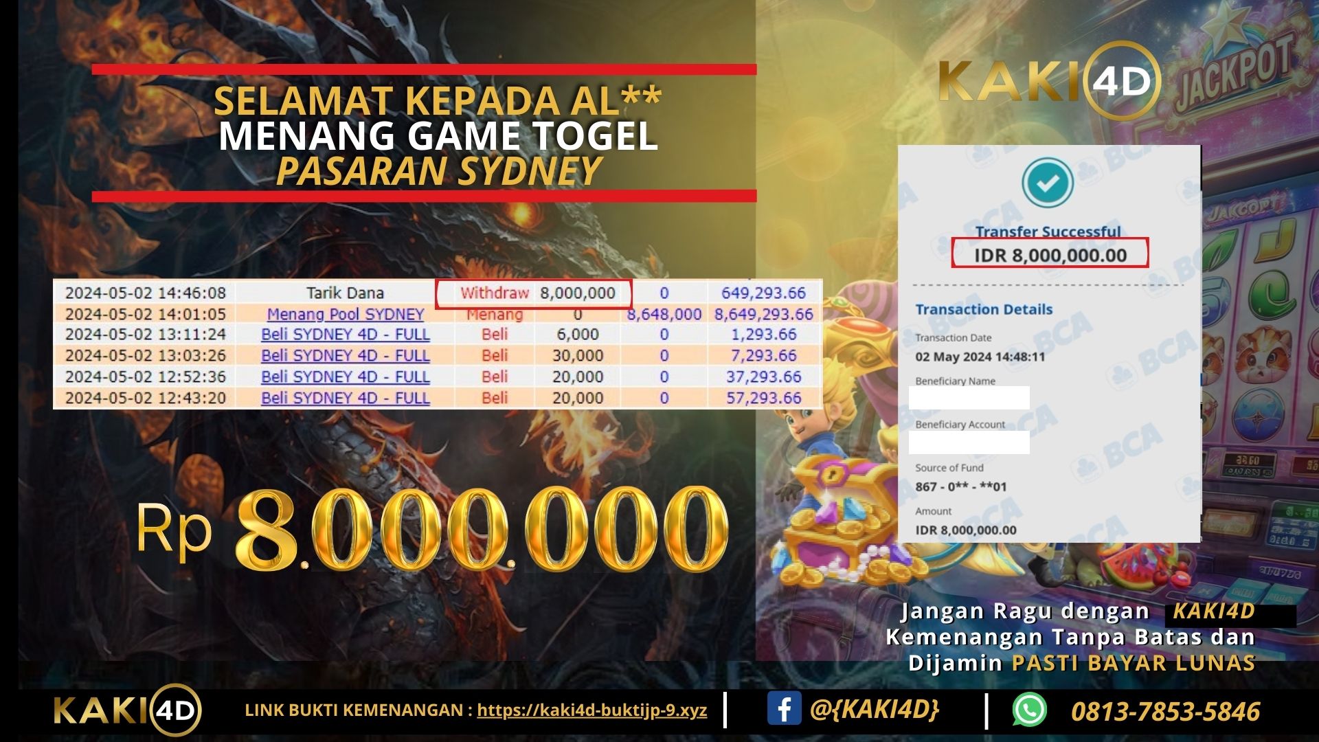 BUKTI JP 8JUTA DI TOGEL PASARAN SYDNEY KAKI4D 2 MEI 2024